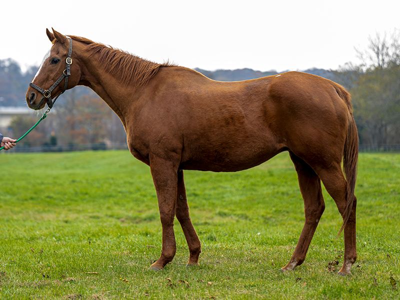 スタートでやや出遅れたものの、すぐにリカバリー。松永幹夫ジョッキーの意のままにしっかりと折り合うと、最後の直線で前を行く馬を楽にかわして先頭ゴールイン。走破タイムの1分21秒2は当時の京都競馬場芝1400メートルコースのレコードタイムに迫る勢いでした。そして、翌年の桜花賞は逃げて従来のレコードタイムと同じ1分34秒2でゴール板を通過。結果的には2着と涙を飲んだものの、そのスピードは美しい栗毛の馬体とともにファンの心に刻まれるものとなりました。