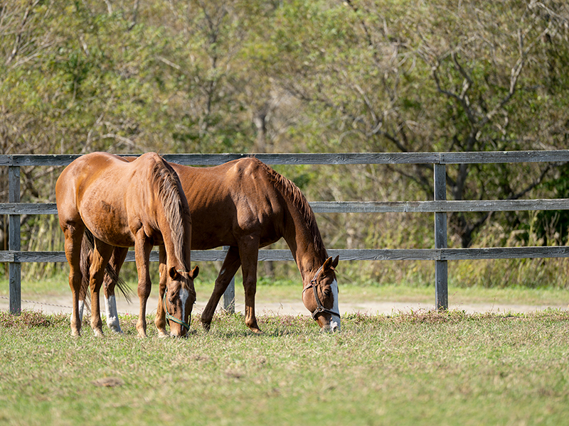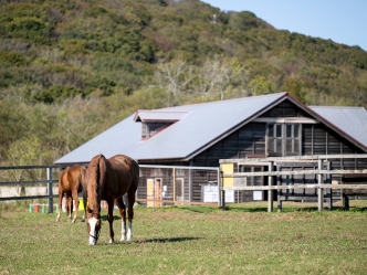 現在は朝7時頃から昼過ぎまでが放牧時間。しかし「スズカフェニックスが厩舎に帰りたがれば、早めに戻すこともある」との事。