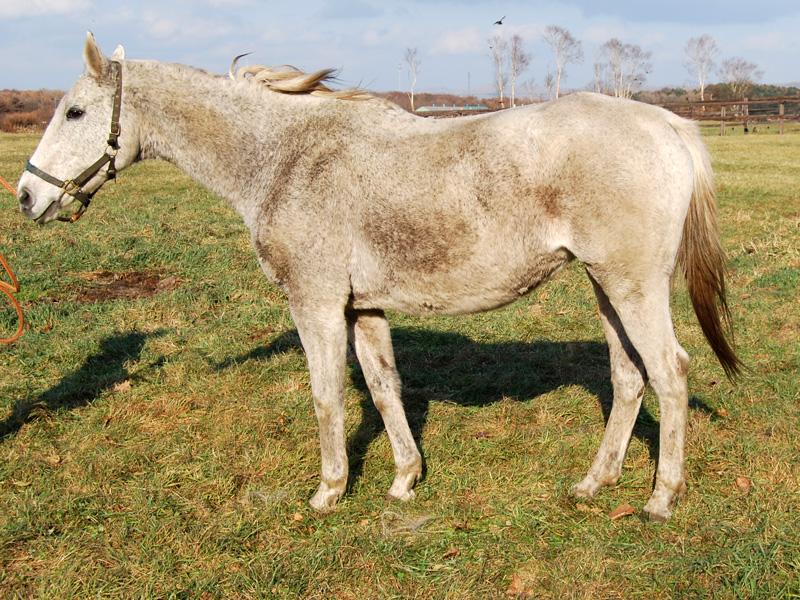 同馬はホリスキー産駒らしく大きな馬だが、がっしりしているというより背が高く、30歳になる今も脚もともしっかりしていて上品なおばあさんと言った感じです。