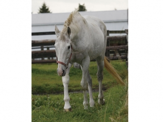 現役時代のビワハヤヒデといえば、グレーの馬体に大きな顔、そして鼻先まで繋がる流星がチャームポイントでした。