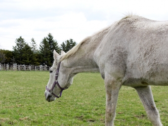 元々馬っ気の強いタイプじゃなかったし、近くの放牧地に牝馬を放してもあまり興味がない感じでのんびりしてますよ。
