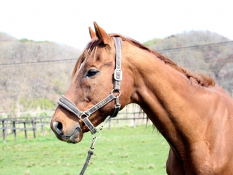 雄馬ということもあり、放牧地では1頭で過ごしています。