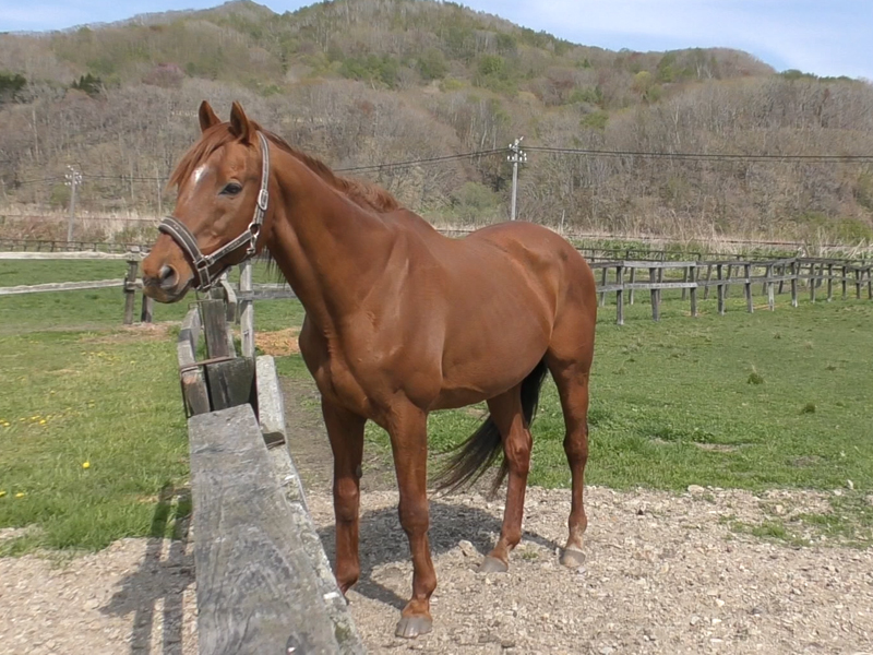 余生を送っている場所は新ひだか町静内にある荒木貴宏さんの牧場。引退名馬4頭と一緒に暮らしています。