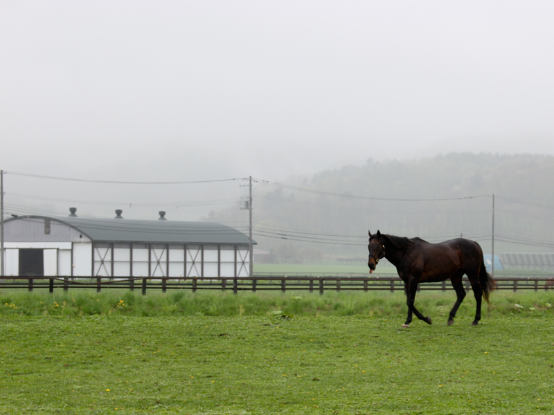 「近くの牧場の雌馬が寄ってくると、この馬自身も嬉しそうに走りまわって元気をアピールするのですが、そういうときだけは張りきり過ぎてケガをしないかと、ちょっと不安になることがあります。