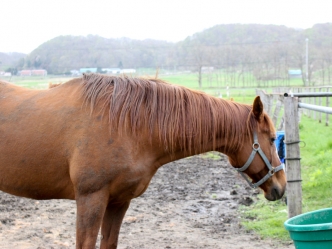 春シーズンは朝5時頃から夕方4時30分くらいまでを放牧時間にあてられているそうですが、近年はケガや病気とは無縁の生活で、歯も丈夫。獣医師とは縁遠い生活を送っているそうです。