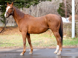 クラシックを目前に骨折の憂き目にあい、そして1年8カ月もの休養を挟んで復帰しますが、今度は屈腱炎に見舞われて現役生活を引退。2004年にレックススタッドでスタートした種雄馬の生活は15シーズンにも及び、その中で菊花賞3着のち阪神大賞典に勝ち、天皇賞・春3着のナムラクレセントや、南関東川崎競馬場の報知オールスターCなど26勝を記録したグルームアイランドなどを送り出して来ましたが、もう間もなく20歳になろうかと言う2018年秋から錦岡牧場で功労馬としての生活をスタートしました。