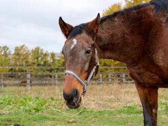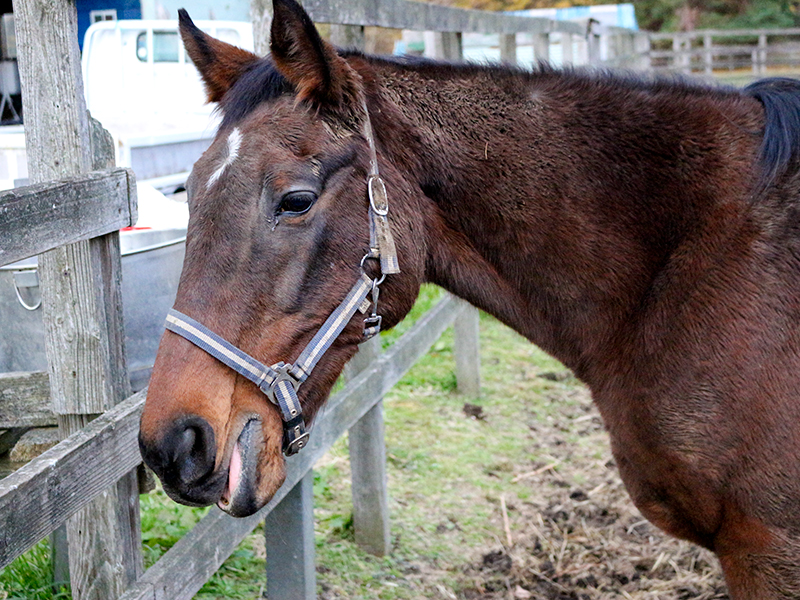 「育成牧場や厩舎では手を焼かせる馬だったようですが、牧場にいた頃は大人しい馬でした。ただ、戻ってきたときは、やっぱり競走馬らしい気性になっていました。」