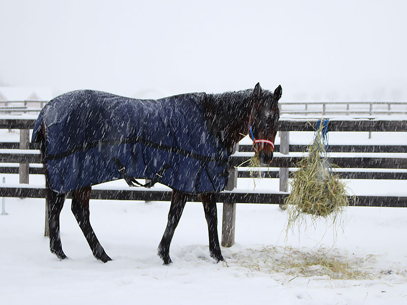 とくにナカヤマフェスタの場合は汗をかきやすい体質とのこと。冬場、馬服を着せると汗をかいてしまう事もあるそうで